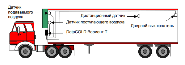 Регистраторы температуры DataCOLD 250 T/R могут использоваться только с датчиками температуры, поставляемыми в комплекте с DataCOLD 250 T/R. Перед установкой необходимо определить, сколько точек измерения потребуется для получения необходимой информации. Лишь оптимальный выбор количества и места расположения датчиков позволяет сделать достоверные выводы о температуре воздуха во всем отсеке.