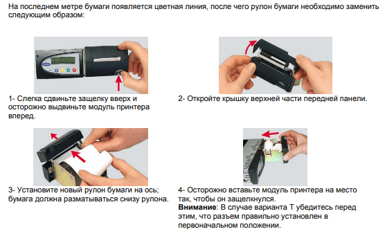 ПРИМЕЧАНИЕ: распечатываемая бумага должна быть отогнута вниз через кромку нижней пластмассовой части. Цветная линия на последнем метре рулона бумаги указывает на то, что его необходимо заменить.